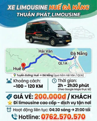 Xe limousine Huế – Đà Nẵng – Dịch vụ đưa đón tận nơi, chỉ từ 200.000đ. Giá cực ưu đãi, tiện lợi tối đa, ngại gì không thử?
